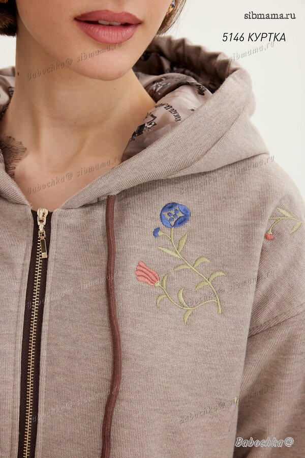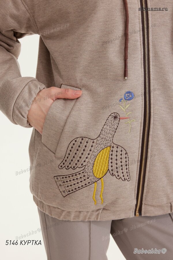 Куртка прямого силуэта на подкладке, застежка центральная на декоративной молнии. Манжета рукава и низ изделия обработаны резинкой . Перед и спинка декорированы дизайнерской вышивкой .
