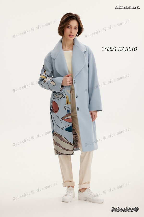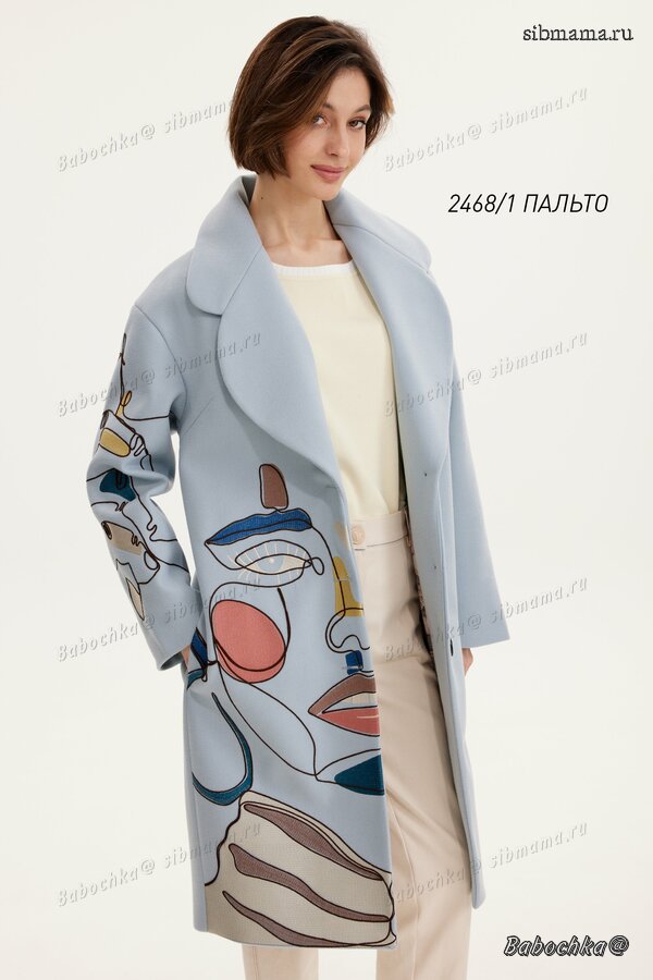 Дизайнерское пальто прямого силуэта из теплой пальтовой ткани. Пальто с втачным рукавом, с центральной застежкой на петли и пуговицы, удобными карманами. Пальто универсальной длины. Перед и рукав декорирован дизайнерской вышивкой.