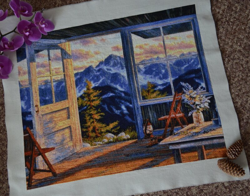 Химера - Н364 "Окно в небо", 350w X 280h, 73 цвета, включая 2 бленда. Канва Zweigart Aida 16, мулине DMC, крест в 2 сложения нити, с помощью программы CCS.