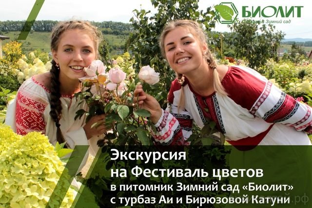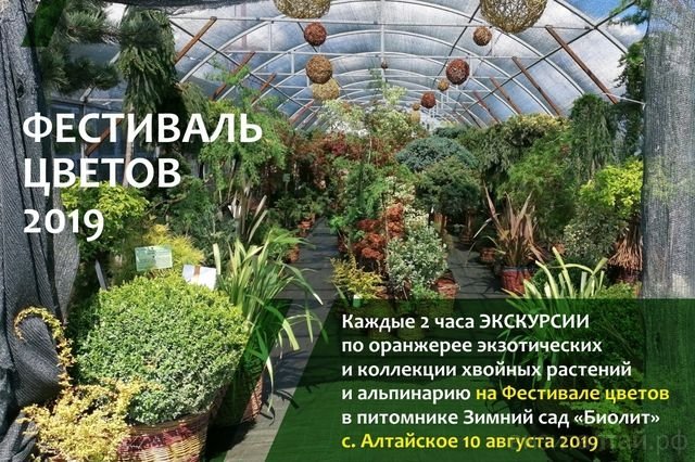 Первый Фестиваль цветов в Зимнем саду компании «Биолит» не случайно устраивают в августе. В это время вся территория питомника утопает в ярких красках цветущих растений всевозможных оттенков. Каждые два часа гостей фестиваля будут отправлять на экскурсии по оранжерее экзотических и коллекции хвойных растений. Знатоки поделятся с любителями приемами ландшафтного дизайна, создания альпинария и композиций из растений. Публику на Фестивале научат плести из ивового прута и печь крапивные блины, предложат продегустировать печенье из крапивы, чаи и густые алтайские бальзамы на основе местного природного сырья.