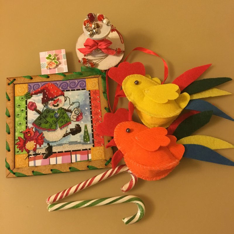 А вот и я со своими подарочками. До сих пор сижу любуюсь! Юлечка-Батурочка была моей снегурочкой! Мне досталось все самое желанное: целых 3 набора, иголочки, рукотворная открытка с теплыми пожеланиями и милейший сапог и вкусняшки! Большое спасибо! Всех была рада видеть!!!