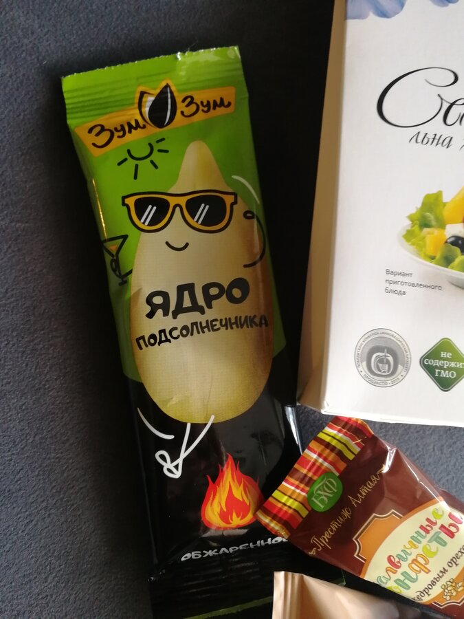 -ядра подсолнечника, чищенные, жаренные, по 30р, тоже в Барнауле сделаны, я не знала что зум-зум это наша марка))