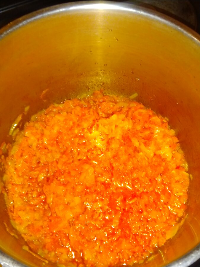 цвет немного потерялся((, думаю из за магазинных помидор, но вкус от этого абсолютно не страдает, просто с домашними насыщенный цвет сохраняется.