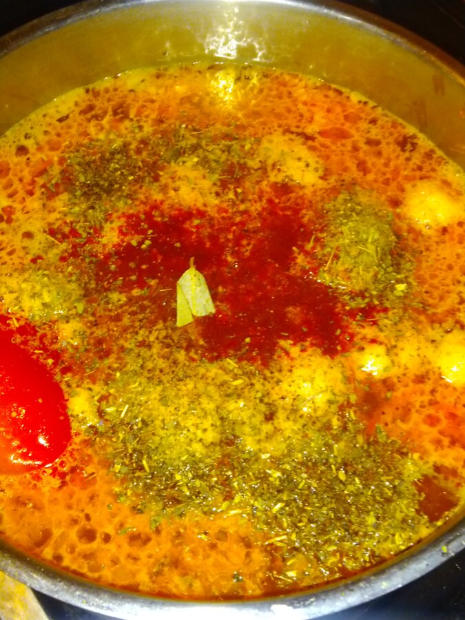 когда начнет закипать - соль, перец, кавказские травы, паприка