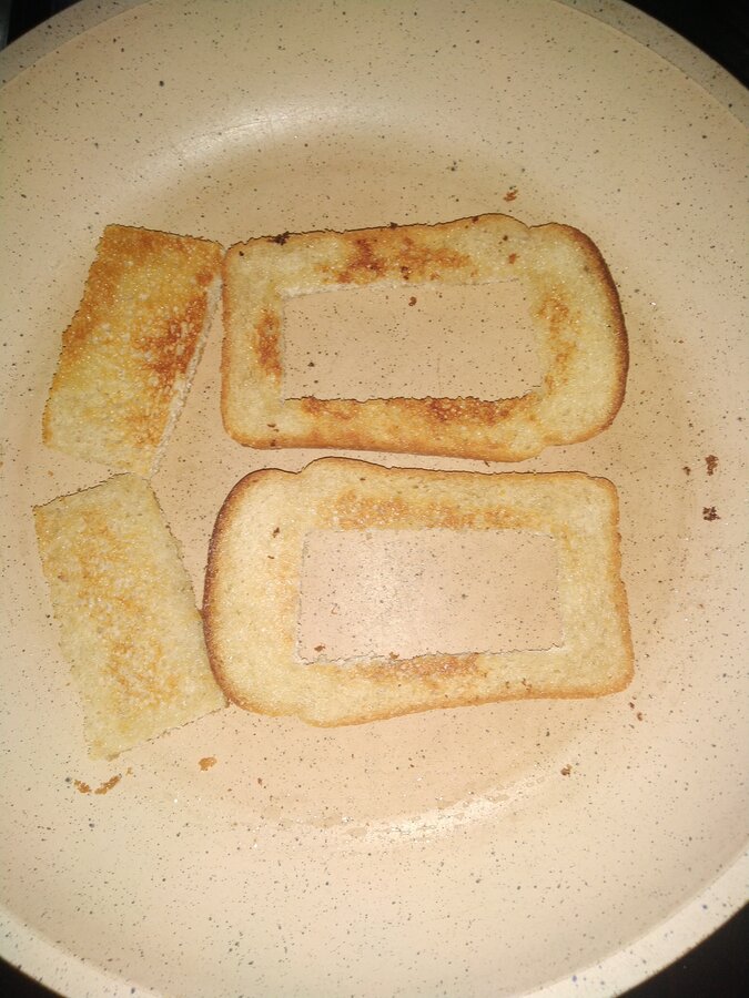 Любителям жидкого желтка пригодится обжаренный мякиш - для обмакивания.
