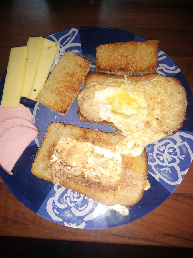 — Серьезный пробел в образовании, леди. — Смотрите, делаем дырку посредине, бросаем в кипящее масло, разбиваем яйцо и вуаля! — шедевр готов.