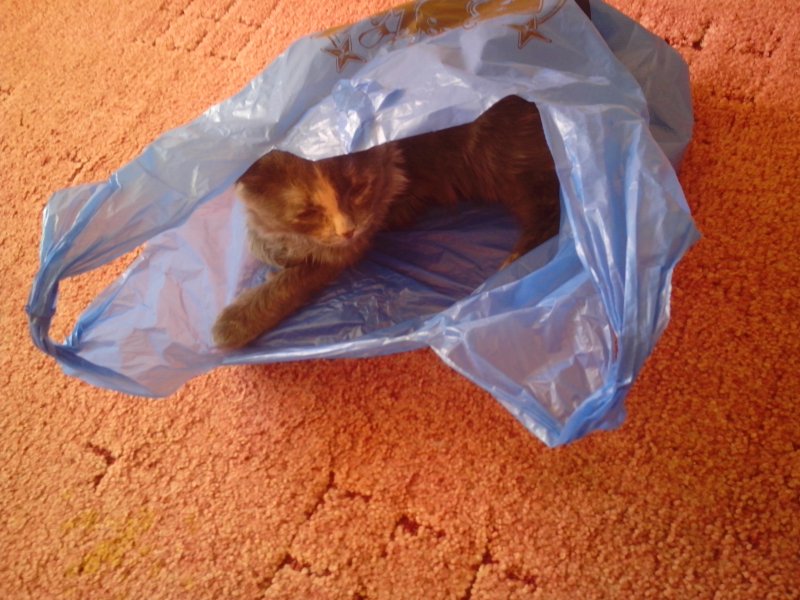 :lol: :lol: :lol: " Кот в мешке" . Лизавета в пакете обосновалась спать.
