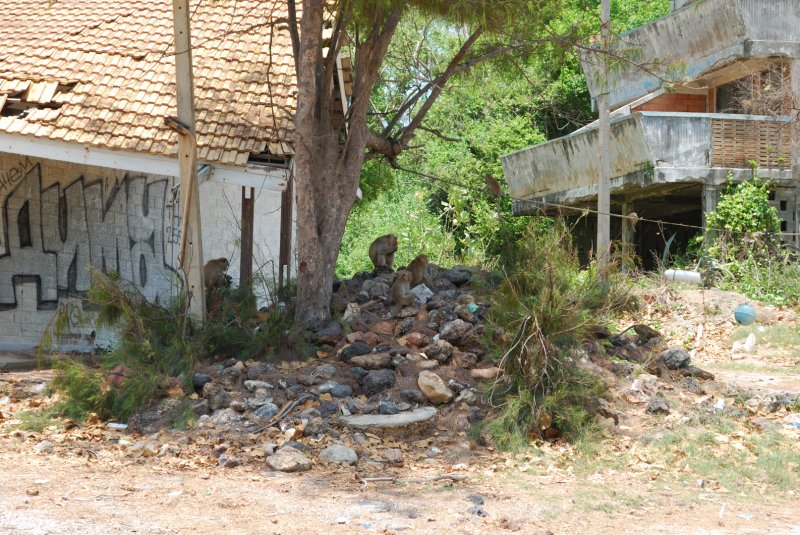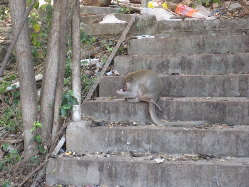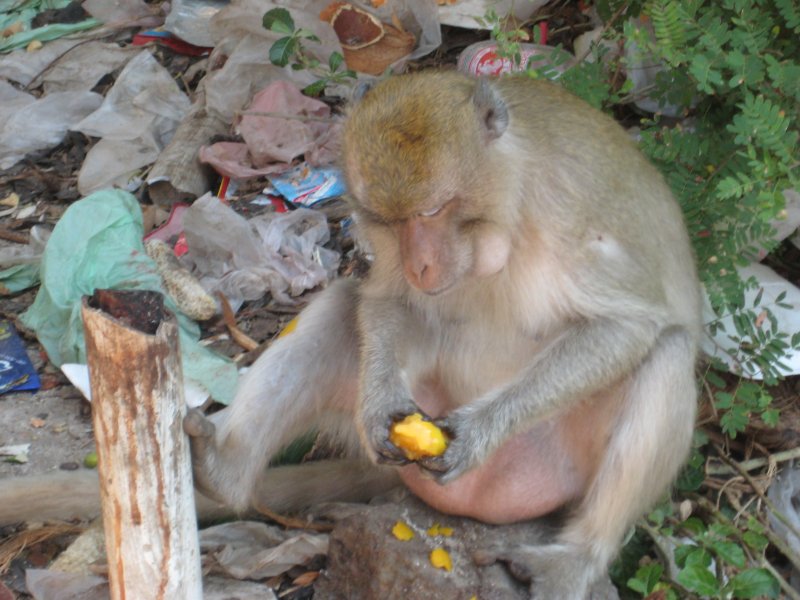 По моему там где кормятся от туристов обезьянки всегда мусор. Мы когда ездили на Квай, то нас завозили к обезьянкам, они из рук выдирают пакетики с едой и все разбрасывают, еще они любят яйца вареные, так смешно их чистят