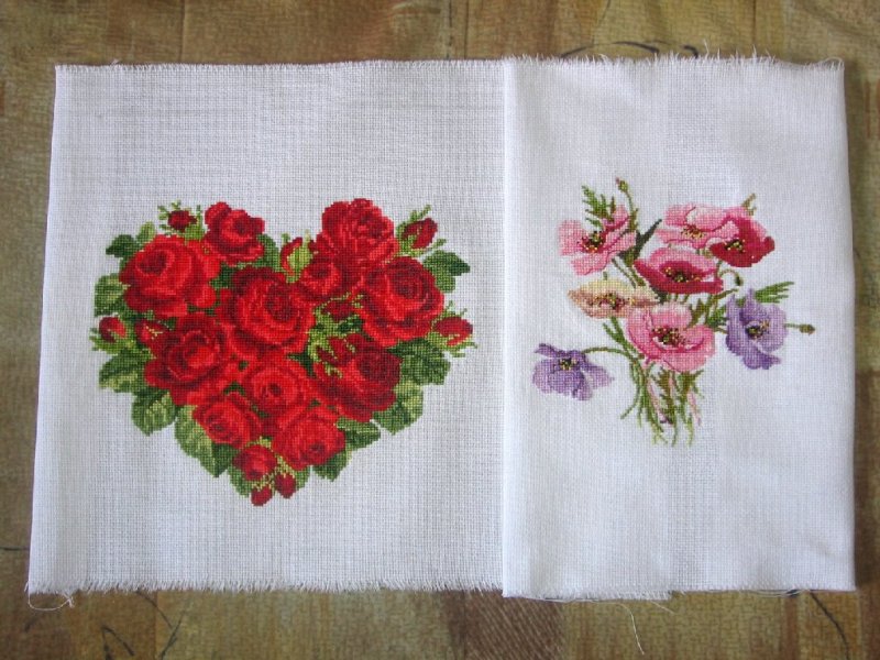вот мои последние 2 работы - сердце вышивала дооолго, во многом помогла тема Борьба с долгостроем. А маки - достаточно быстро.