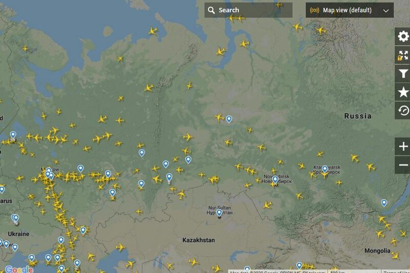 FlightRadar показывает далеко не все рейсы над Россией, а скорее даже малую их часть.