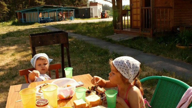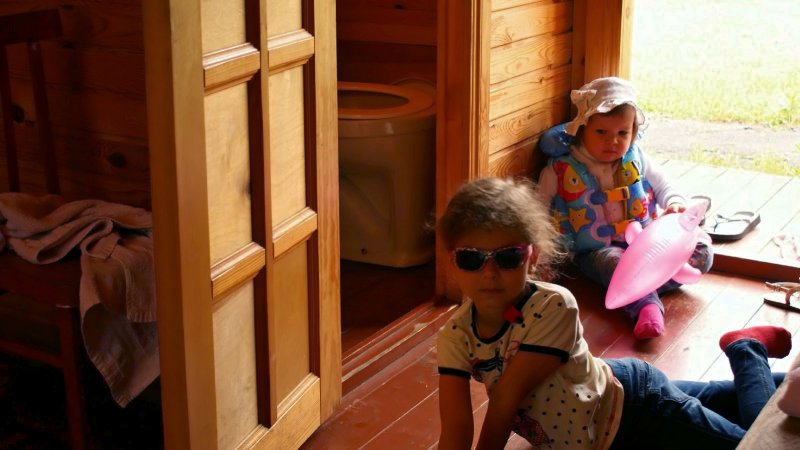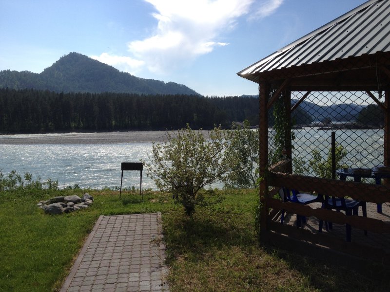 Когда приехали в домик по договоренности, оказалось, что домик вцелом хороший, с удобствами, но придомовой территории как таковой нет, детям поиграть негде, поэтому мужья проехались по поселку и нашли этот участок, в гостевых домиках была одна комната с водой и плиткой (душ и туалет уличные), зато вид с беседки шикарный. Я с дороги ворчала весь день до вечера, что мне нужен белый унитаз и душ, в итоге мне и моим детям разрешили плюхаться в санузле в хозяйском доме зато вид с беседки на горы, на Катунь и большой газон