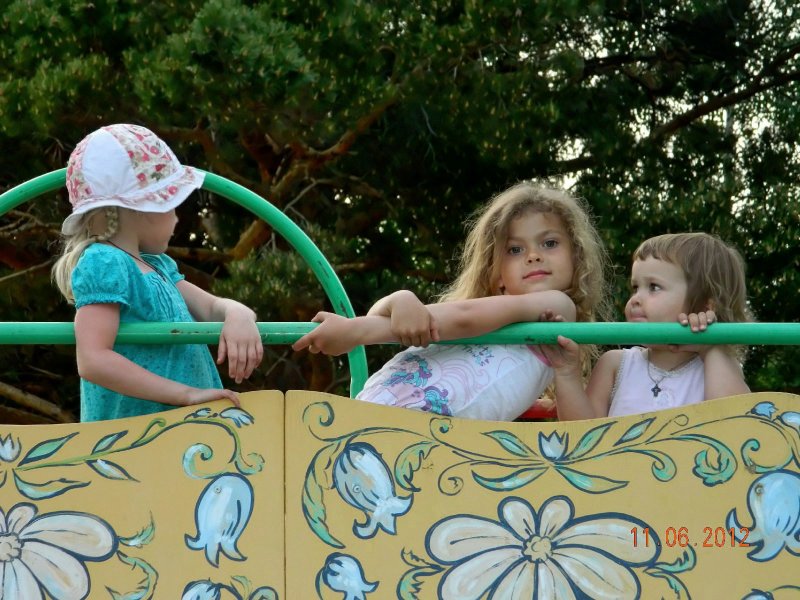 Катерина только открыв глаза кричала "гулять", я ей почти не занималась, только отловить - накормить и отмыть, все остальное время бегала с девочками. В озере купалась с удовольствием, а в теплый бассейн один раз с визгом поставили, хотя остальных деток оттуда только и вылавливали