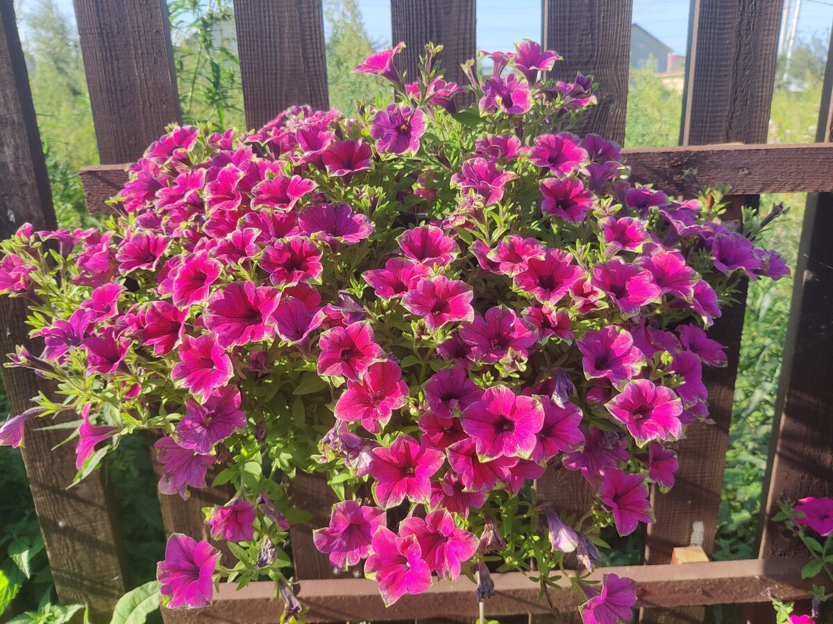 Пожалуй и сурфинии плетистые тоже попадают в этот список Петуния Surfinia Hot Pink и Петуния Surfinia Hot Red. Cередина лысая. да в том году было хорошо - понимаю моими стараниям. Ухаживала, стригла. В этом году не стригла (были личные обстоятельства) - могла только поливать... И результат не заставил себя ждать. Плети внизу в цветах, середина лысая.