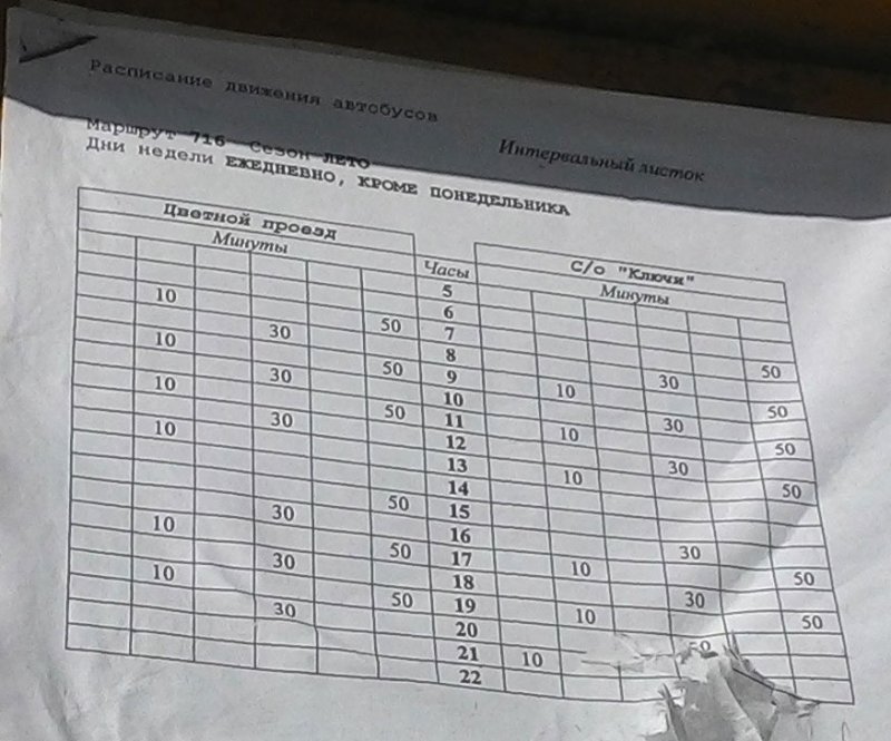 Если вдруг кому понадобиться, оставлю тут летнее расписание 716 автобуса.