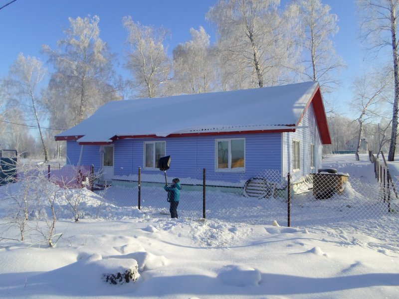 удачно расположили дом по сторонам света, с этой стороны снега совсем нет. Это у вас южная сторона? А как на другой стороне?