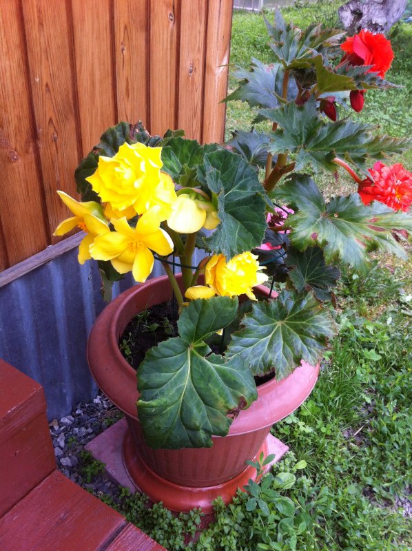 Ну вот еще прикупила в колорлоне-Пикоти желто-красная 3 клубня по 10см,много почек розовых-от 3 до 10 на клубне :-) 283р и бегония махровая красная-2 клубня 5 см,139р :-) Сортов в продаже было 5 ,пакеты все целые,с клубнями.