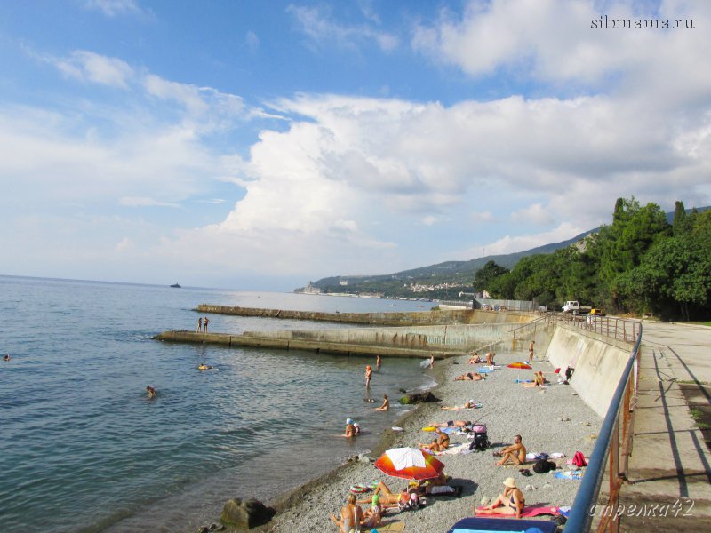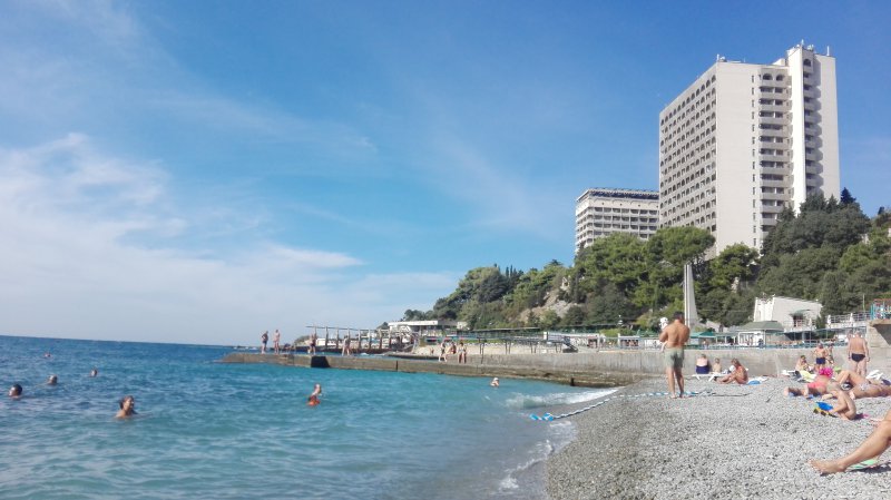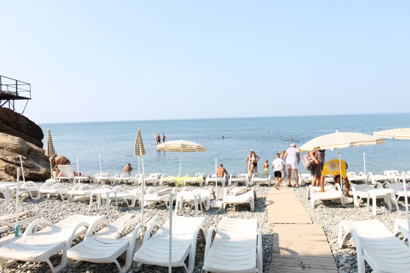 Мы ходили на кусочек пляжа у скалы за пляжем санатория.