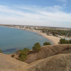 тишины и спокойствия,вот почему москвичи уже много лет ездят именно туда от суеты.Для тех кому нужны развлечения эта база не подойдет. Там есть в 2,5 км есть пансионат Азовский.Мы один раз по берегу моря дошли до этого пансионата, чтобы посмотреть, это дочь нас попросила, раз мы были почти рядом.Там народу очень много, аквапарк детский на территории базы.И пляж у них оборудован лучше, но и цены у них аховые.Территория базы неуютная, не такая ухоженная как наша.Короче сходили посмотрели и сделали выводы, что у нас лучше.От их пансионата было видно г.Щелкино.В самом поселке есть всего 1 магазин, но к базе приезжают местные жители, продают фрукты, вино, сладости, Мы покупали вино у женщины домашнее -Магарач, такое вкусное 1,5 л-300р. Вообщем мы купались, загорали и просто наслаждались тишиной и пением горлиц.Еще в наших планах были экскурсии в Керчь с базы и в Феодосию.Но Феодосию мы проезжали когда нас везли на базу, то чтобы съездить в Керчь, мы заказали такси у хозяйки и водитель нас свозил, ждал нас там, пока мы на горе Митридат побывали, спустились по лестнице, сходили в церковь Иоанна Предтечи и прогулялись по центру, купили подарочки.Не знаю кому как, но мне этот город пришелся по душе, как-то так уютно я себя в нем чувствовала