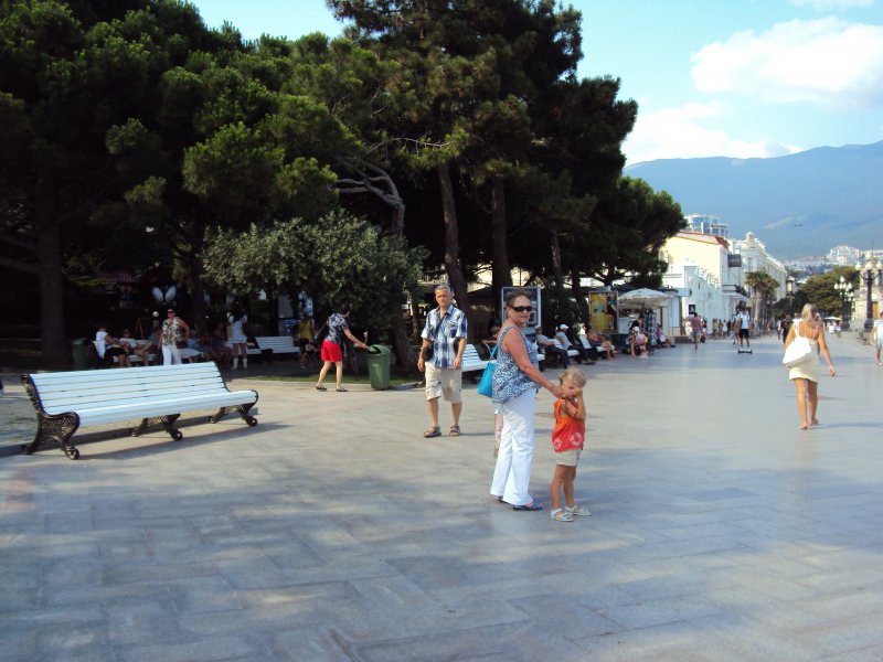 Так же съездили в Ялту. Тоже своим ходом на автобусе, два с лишним часа быстрой езды и мы там. В автобусе не жарко, места у каждого, вполне комфортно.