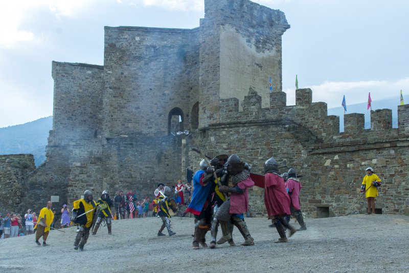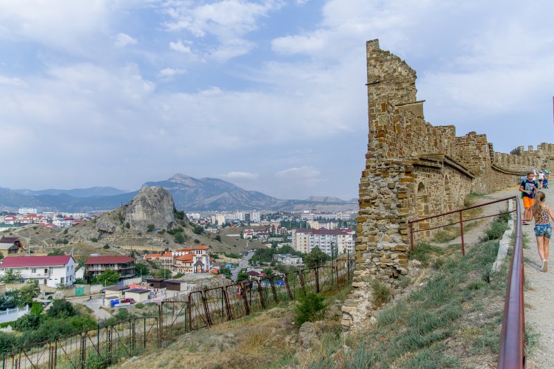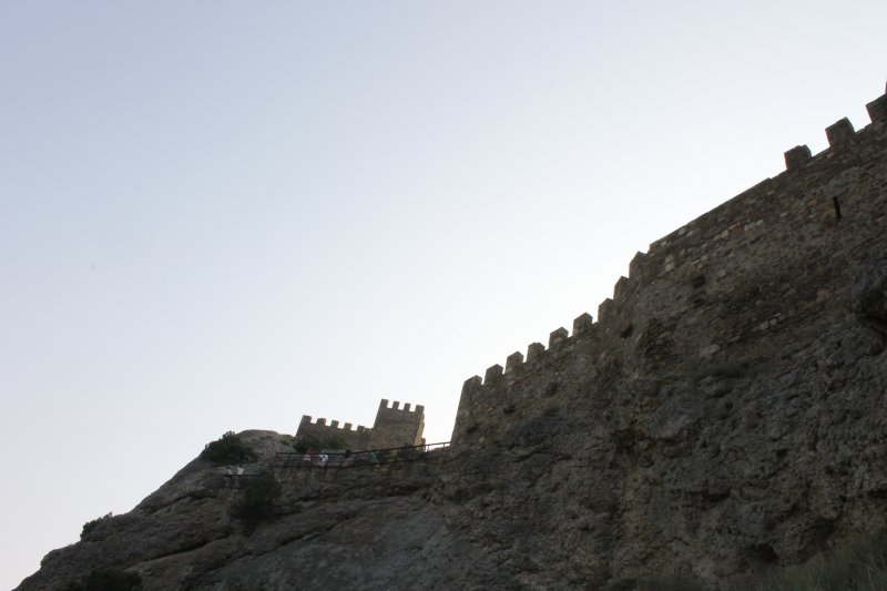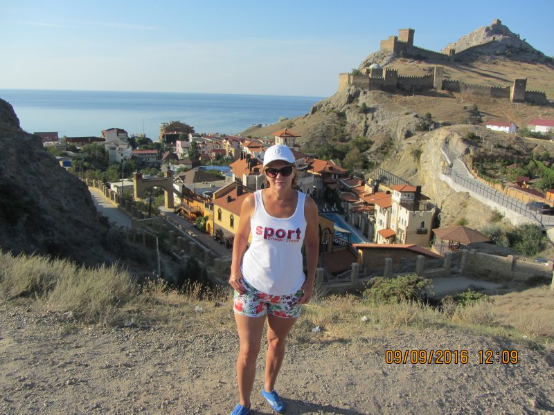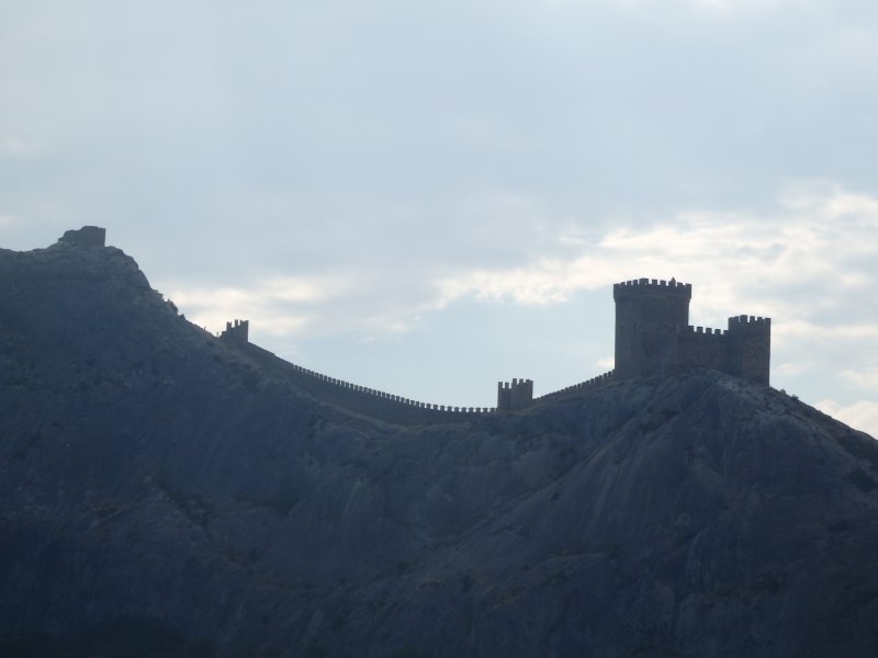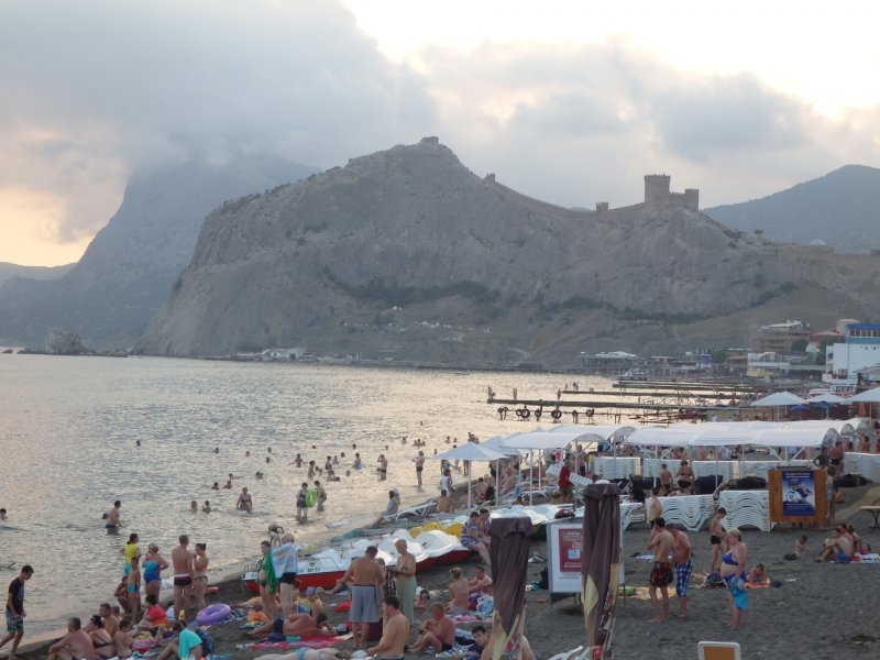 Оказывается наш пансионат не так далеко был от центра.По дороге очень много кафе, столовых где можно покушать.Но это еще не все.Нас удивила набережная.Она такая большая, днем народу очень много, а вечерами еще больше и столько там разных развлечений на любой вкус.И такое ощущение, что жизнь вечером там только начинается.Представляете откуда мы приехали, из тишины и в такой кипиж.Все горит, сверкает, на воде на катерах экстремальные катания.Поужинали вечером мы в кафе недалеко от дома (675р.).На след. день мы пошли пешком на Генуэзскую крепость, от нас она недалеко была.Входные билеты мы взяли за 150р. с чел.без экскурсии.(с экскурсией 200р).Как мне там понравилось, это просто я не могу описать тех эмоций, которые у меня были на тот момент.Вообще я не люблю такие исторические места, но здесь совсем другое,я была просто в восторге,посмотрели в музее на территории,интересные древние украшения женские,косметику, оружие, деньги, посуду.Мы забрались на самую вершину крепости, хотя и опасно было.Купили на территории подарки и пошли с крепости на пляж.Вода чистая, дно галечное, но галька большая.После пляжа пообедали в кафе, отдохнули дома, а вечером на набережную гулять пошли.