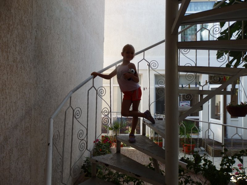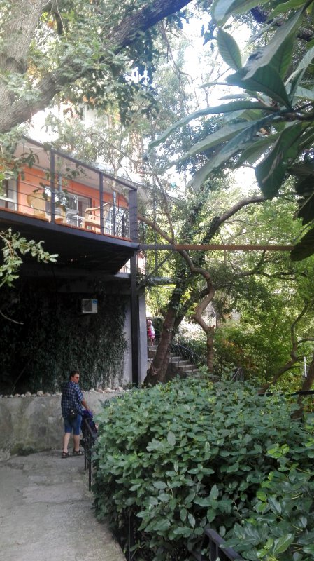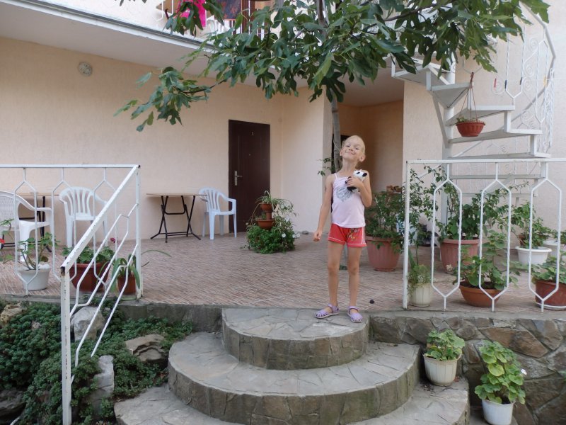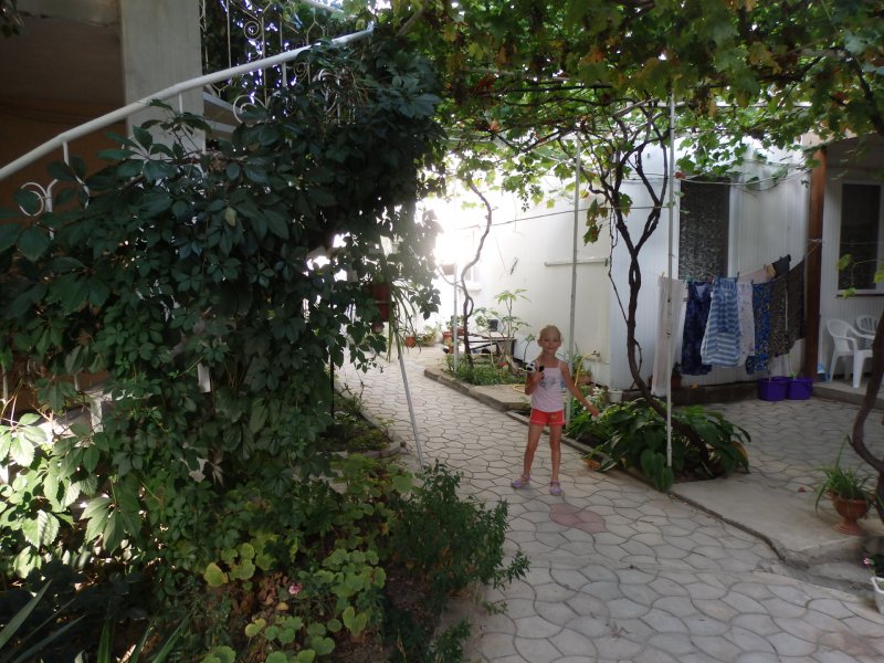 Мы брали машину напрокат в аэропорту Симферополя. Съездили в Севастополь, Бахчисарай и несколько раз в Евпаторию. Это существенно скрасило отдых. А то проживание в Зеленой усадьбе могло реально испортить все впечатление от моря. И дело не только в “душевном” отношении к гостям и новом тазике - наши дети очень веселые и совсем не тихони. Поэтому возможность менять место жительства хорошо повлияла на всех. Почему-то воплей и шума становилось гораздо меньше, стоило нам уехать в другое место. Мы не очень верим во всякую энергетику места и прочие штуки, но тут все одно к одному складывалось.