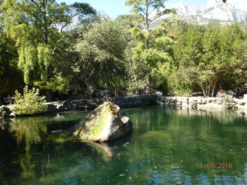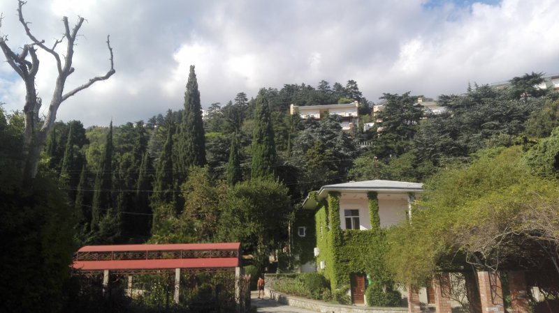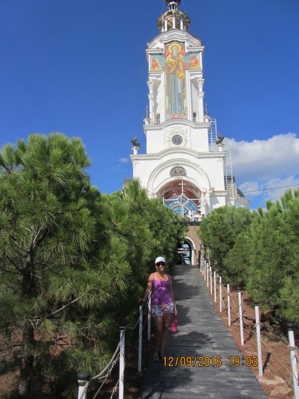 Утром пошли на море, еще вечером когда приехали, пошли смотреть где что, то море сильно штормило.Мы спустились на пляж, море снова штормило, но уже меньше и о боже, какой грязный пляж, а какое грязное море, впервые в Крыму я увидела такое грязное море.Мне хотелось побыстрее оттуда съехать, но куда.Хотя местные потом нас уверяли, что это из-за шторма.Ничего подобного, на Азовском море всегда такие волны и штормит постоянно, но море то чистое, а здесь....В таком море мне не хотелось купаться.И в итоге в Солнечногорском я купалась всего 2 раза из 7 дней,потом мы просто ехали в Алушту на маршрутке минут 20, потом на троллейбусе до набережной и купались там на пляже.Вот там чистое море. На след.день мы пошли пешком в с.Малореченское в храм-маяк Николая Чудотворца.Там вот эти 3 поселка:Солнечногорское, Малореченское и еще Рыбачье расположены близко друг от друга.Посетили храм, побывали на смотровой площадке, в цокольном этаже храма находится музей морских катастроф, но мы туда не пошли.На след.день мы заказали такси и поехали на водопад Джур-джур.Я еще зимой написала себе список мест, которые хотели мы посетить, одно из первых был этот водопад.Нас довезли до опред.места. а дальше пешком.Такси в один конец-350 с чел.Договорились что обратно он за нами приедет.Вход в заповедник на водопад-100р с чел.Прошлись до водопада, деревья такие необыкновенные там, водопад не очень большой, не оправдал моих ожиданий.На след.день мы поехали в парк Айвазовского, такси до Алушты-50р с чел.Из Алушты до Партенита 14р.на автобусе, входные билеты в парк 300 р. с чел.с экскурсией.Экскурсии часто проводят.Парк великолепный, настолько красивый и ухоженный.Мы даже искупались на их пляже.Все чистенько, вода была в море такая теплая, мелкая галька на пляже.Пообедали мы в столовой в самом парке всего за 400р.Обратно мы решили до трассы дойти пешком до троллейбуса.(цена 20р билета до Алушты), старались как можно больше ходить пешком, если бы это был июль или август, то в такую жару не пошли бы.А в сентябре все-таки комфортнее для экскурсий и море еще теплое.Оставшиеся дни ездили купаться в Алушту, гуляли там весь день и к вечеру возвращались в поселок.Вообщем я вам рассказала как дела тут с морем обстоят, а уж вы решайте, ехать или нет сюда.С йогами проблем не было, все было тихо, мы их не слышали, у них постоянно тренинги проходили, да и мы к вечеру только на базу приходили.