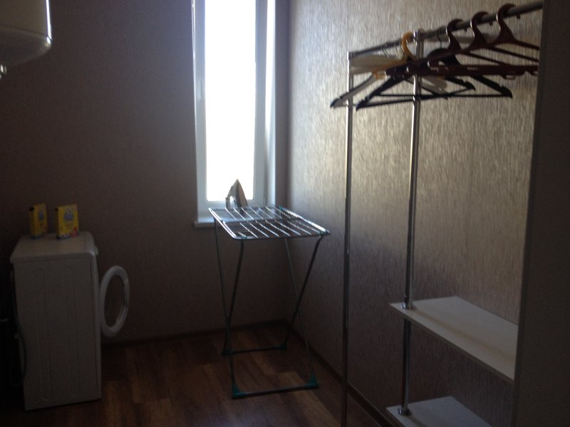Номер представляет собой квартиру-студию с отдельной гардеробной (с гладильной доской и утюгом, со стиральной машиной, металлической сушилкой для белья , стойкой для развешивания одежды и полками).