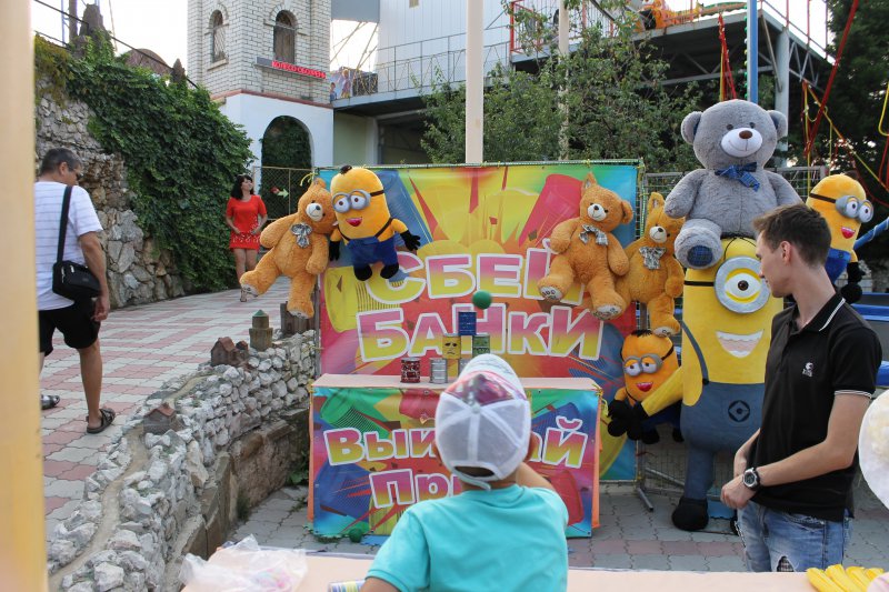 - аттракцион - нужно выбить все банки.