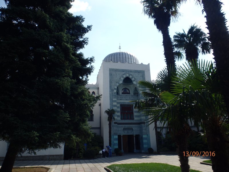 Нас высадили на автовокзале, мы купили билеты на автобус до Судака за 97р.50 коп. с чел.и 10р.за чемодан.Хотя там же на автовокзале предлагали такси до Судака за 450р.Мы купили билеты на послеобеденное время, оставили багаж в камере хранения и пошли искать картинную галерею Айвазовского, купили билеты входные без экскурсии 200р с чел., с экскурсией 350р. Посмотрели,но все быстро, времени было не так много.Затем пообедали в столовой по- домашнему (645р.)И когда шли назад на остановку до автобуса, то я по дороге купила шампунь с хной всего за 85р. Везде потом по Крыму этот же шампунь стоил 150-160р. Проезд по Феодосии в автобусе 13р. И еще нас удивило что рядом с набережной находится ж.д вокзал.Рядом с автовокзалом мы сходили в церковь св.Екатерины.Поехали в Судак. СУДАК На автовокзале нас встретил сын хозяев на машине и довез до пансионата. Хозяева-татары оказались добрыми и приветливыми людьми. Номер двухместный на 1 -м этаже -800р.в сутки.Сайт у них тоже есть, можно все посмотреть.Номер конечно не такой просторный как на базе Лилия, но на 3 дня пойдет.Мы бросили чемоданы и пошли смотреть город,море.Рая-хозяйка срезала нам кисть винограда, которая висела прямо во дворе кг на 1,5, помыла его и отправила нас на море.Дорога к морю минут 15 всего.