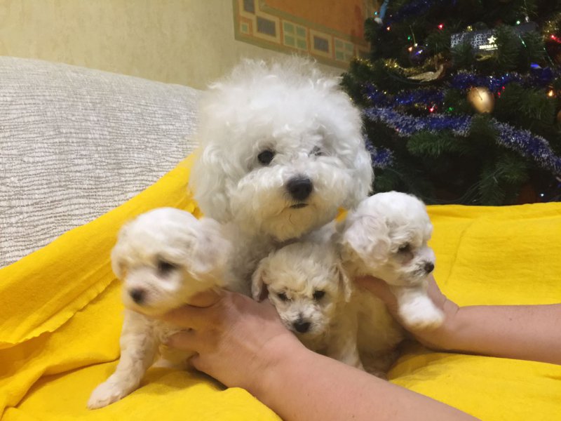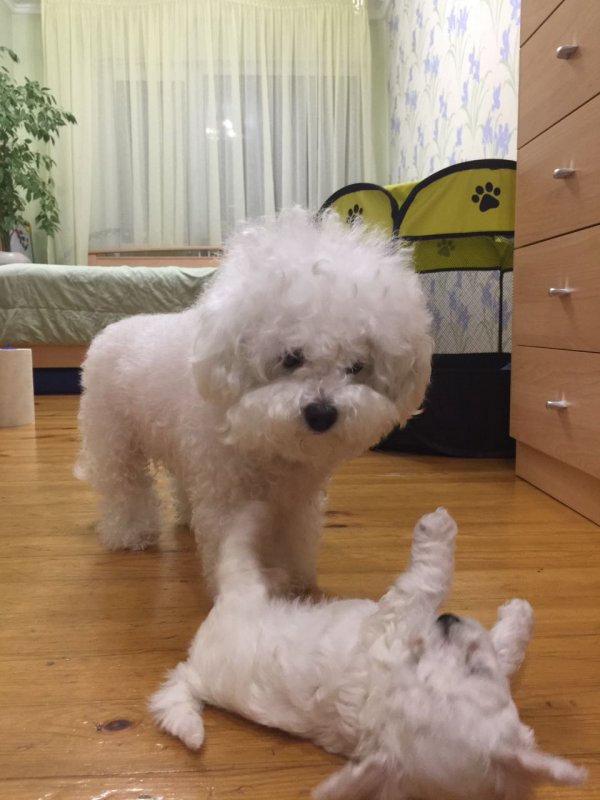 Мамуля Ваша как игрушечная,мордочка такая беленькая,значит все ок с питанием. ,Носик аккуратный,я в городе у себя не могла таких найти. Мы в Новосибирске купили за 30 тыс. Я не капли не пожалела,стоят они этих днег. А кто говорит что ухаживать сложно,просто ленивый. На мой взгляд никаких проблем нет глазки протирать регулярно и расческой проводить время от времени.Зато такой кайф на полу ни волосочка,запаха 0. У нас еще к пеленке уже был приучен,вообще прелесть прелестная. Спит когда мы спим,даже будить ему в голову не приходит. Я вообще теперь не представляю как можно жить без Бишонов .