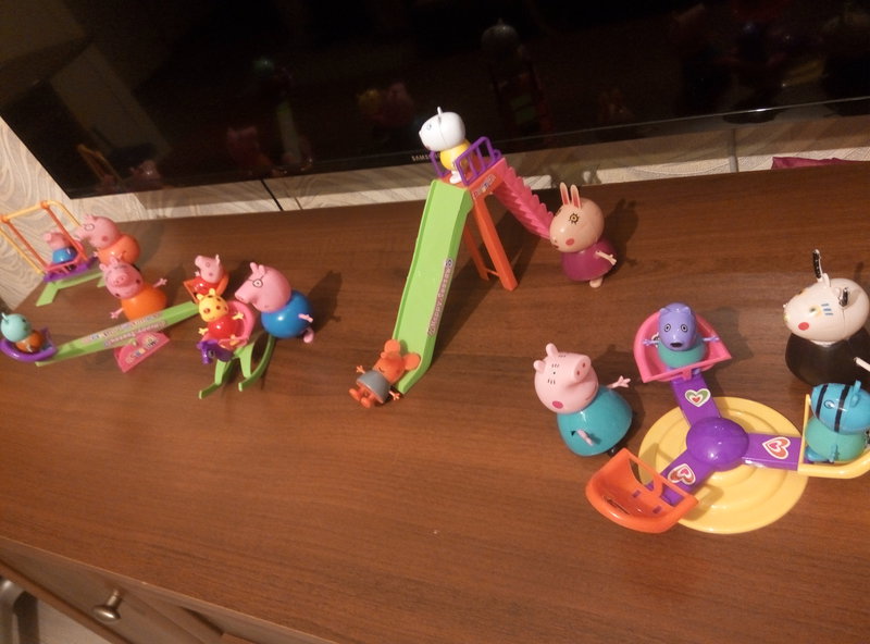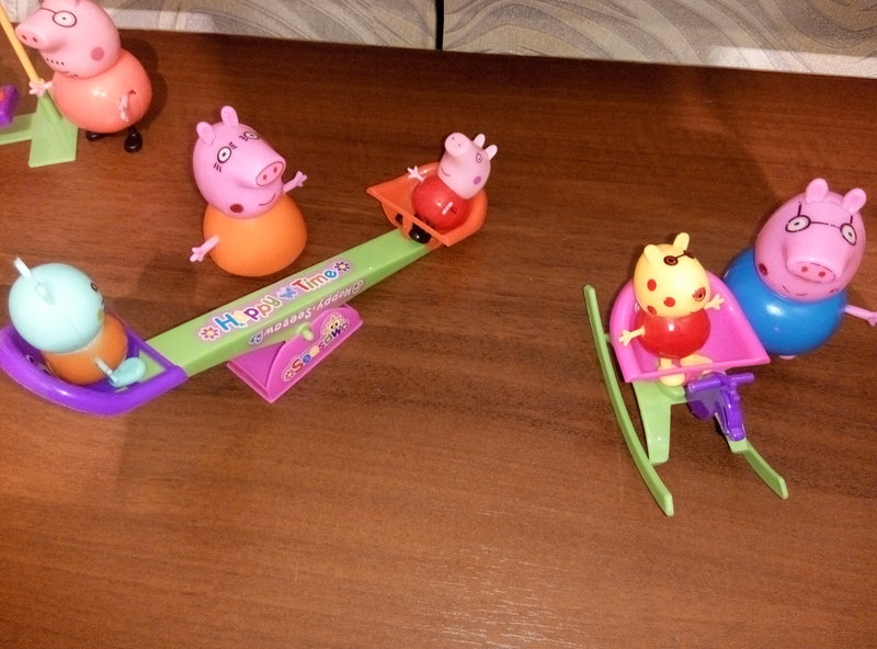 Набор с детской площадкой порадовал прям! Пластик хороший, крепкий, блестящий, разных цветов, а не покрашенный сверху. Руки/ноги у свинок и других героев двигаются и гораздо крепче, чем в первом наборе. В сравнении, конечно, небо и земля