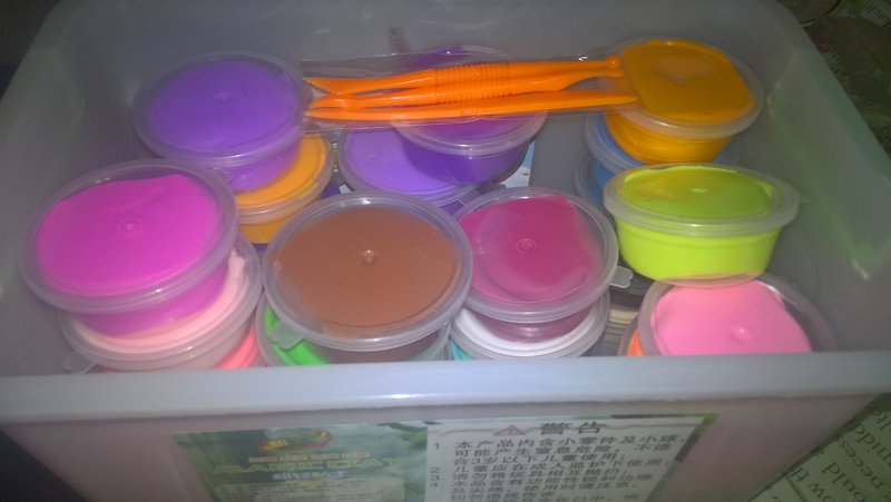 В картонной, с набором формочек, пенопластовых фигурок, глазок и прочих "штучек"