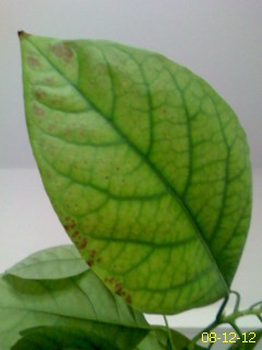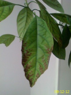 Выраслили авокадо из косточки :-) Рос отлично, пересаживали 2 раза... а тут листики начали покрываться пятнами :-(