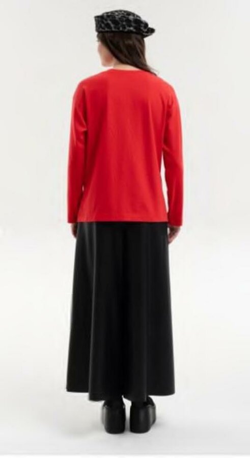 71 Юбка на поясе средней длины до колен. Застежка на молнию. NEW PREMIUM QUALITY/TREND COLOUR Костюмный хлопок-лен в диагональную выработку красного цвета (60% хлопок, 40% лен) 3350