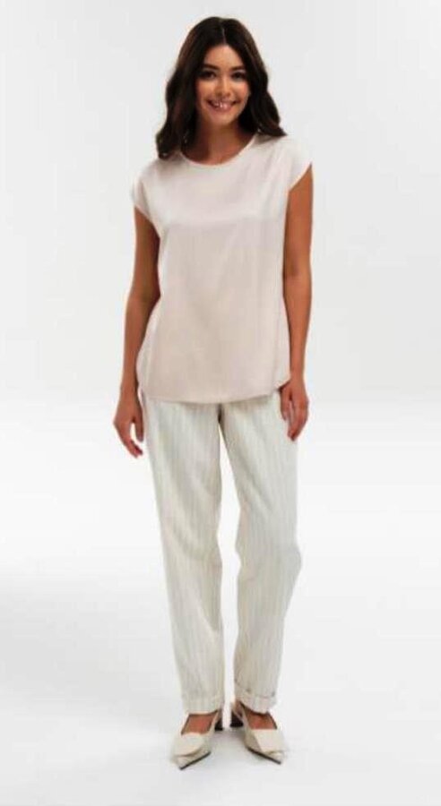 2 Блуза со спущенным плечом без рукавов, с круглым вырезом, свободного кроя. Молочный с золотом (62% вискоза, 26%полиакрил, 5%полиамид, 4 метанит, 3% эластан) 3200