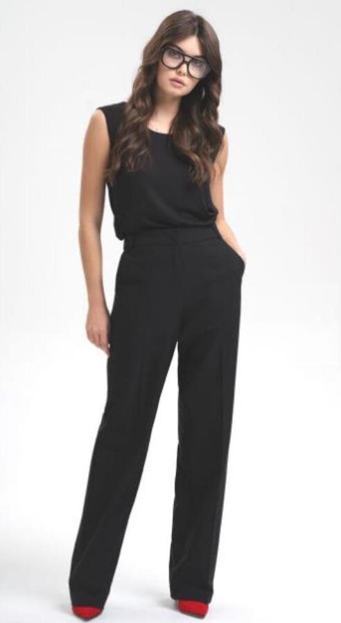 7 Стильные силуэтные брюки на любой для нарядных и элегантных образов. Стрелки придают силуэту изящество, зрительно вытягивая ноги. Комфортное сочетание шерсти, шелка и вискозы обеспечивают идеальную посадку и сохраняют тепло и уют. NEW PREMIUM QUALITY Костюмная ткань с шерстью и шелком премиального качества черного цвета (67%п.э., 20%вискоза, 4%шелк, 4%шерсть, 5%спандекс) 4600