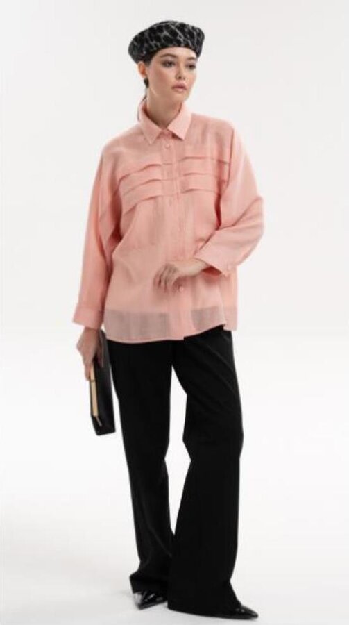 21 Блуза в стиле Бохо, объемного силуэта с воротником стойка и пышными рукавами на манжетах. Блузочный крэш-шифон красного цвета (100% п.э.) 3400