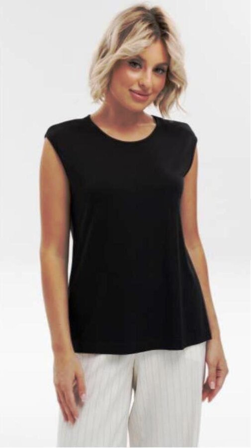 8 Топ с контрастной отделкой по вырезу горловины и проймы. Черно-молочный (67% вискоза, 29% полиакрил, 4% полиамид) 2700