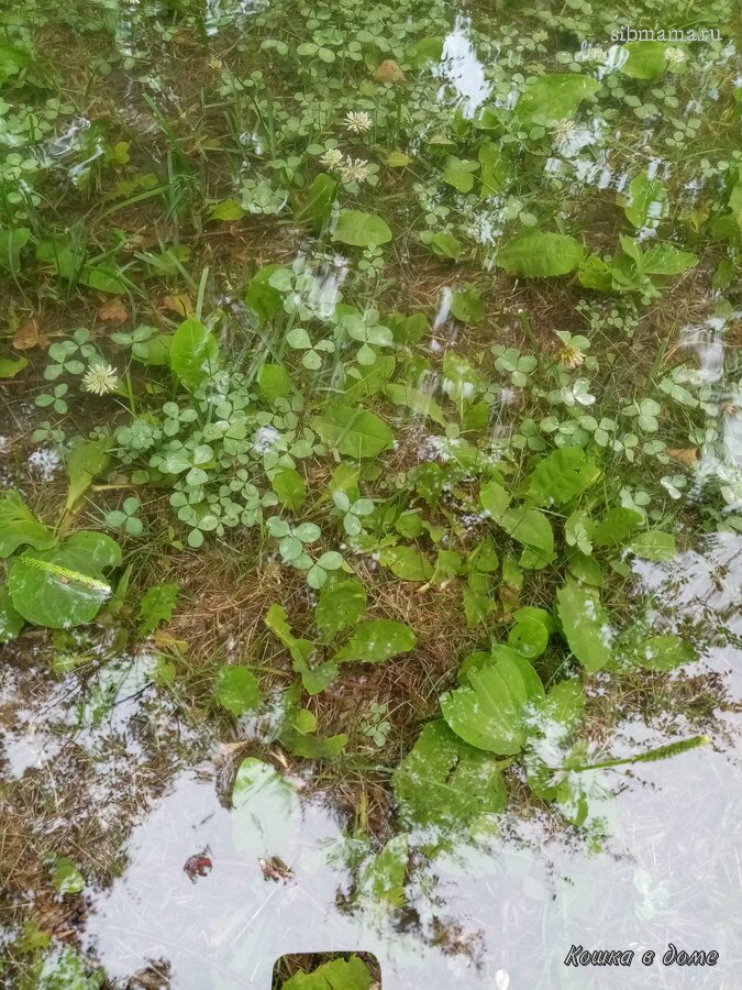 Вся трава на фото полностью под водой после дождя