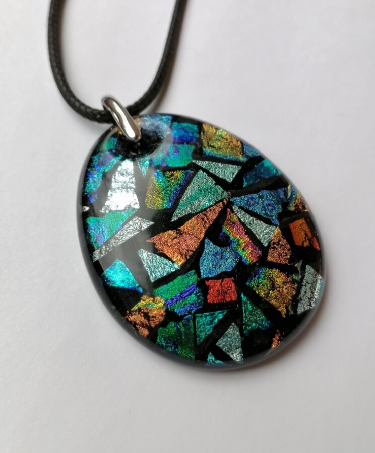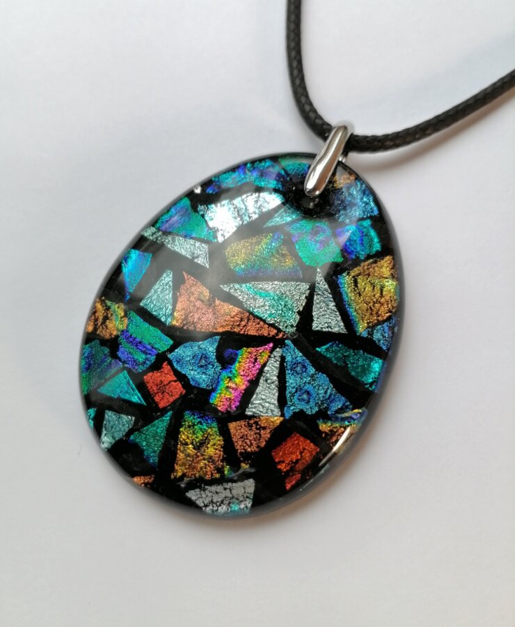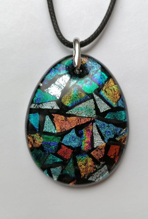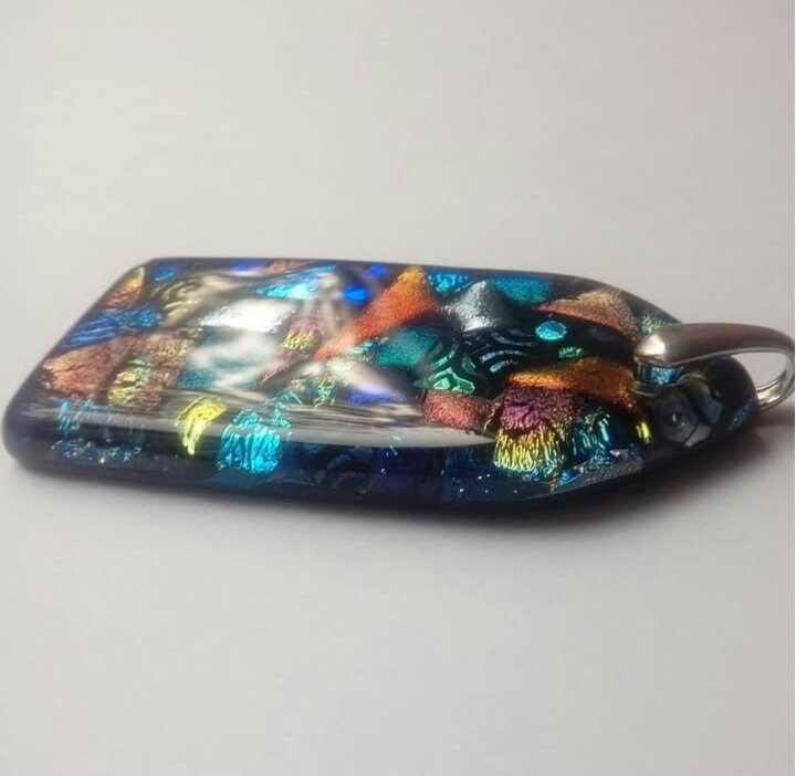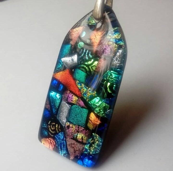 Кулон авторской работы из стекла. Декор "мозаика". Ручная работа с выплавлением и обработкой.