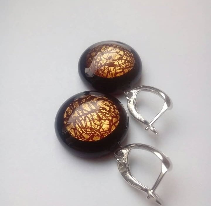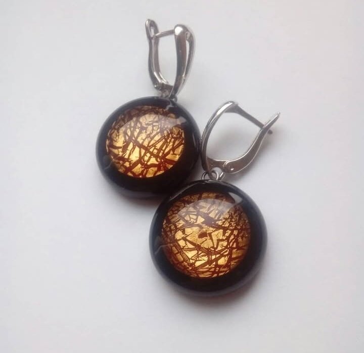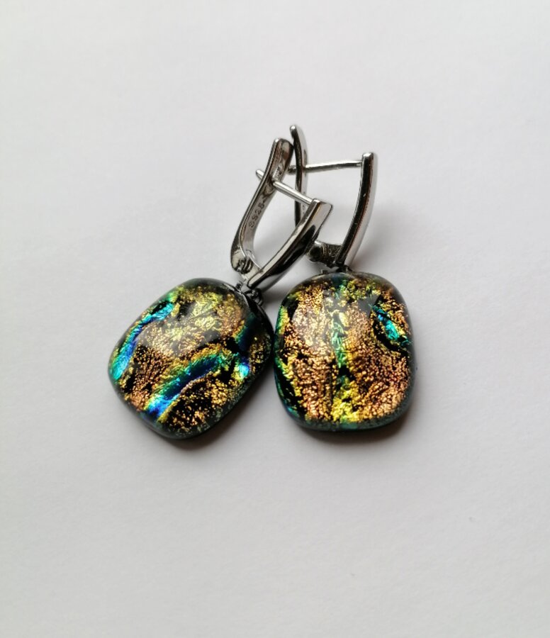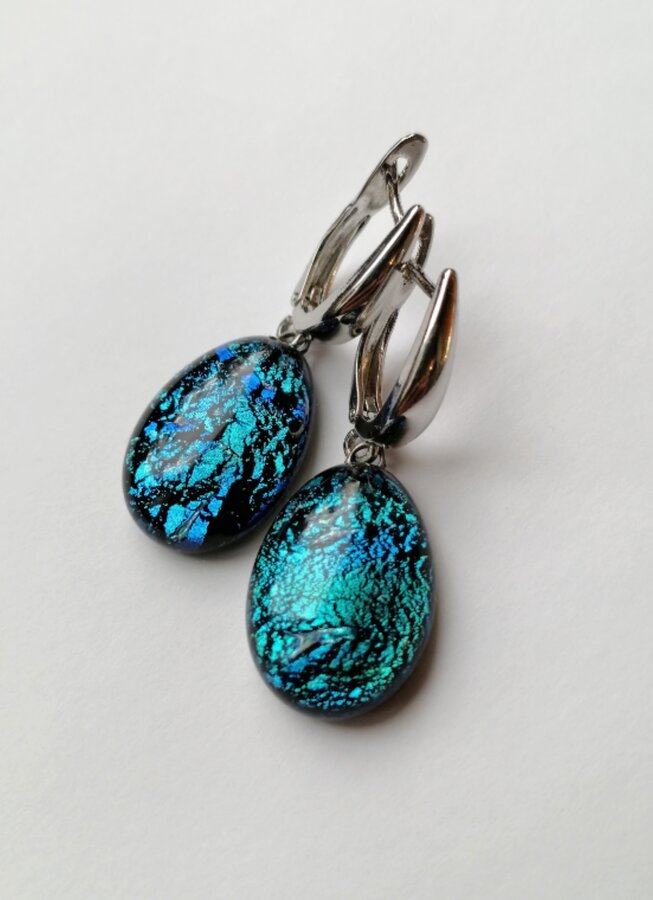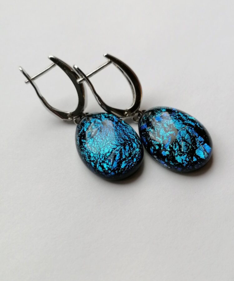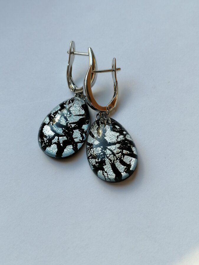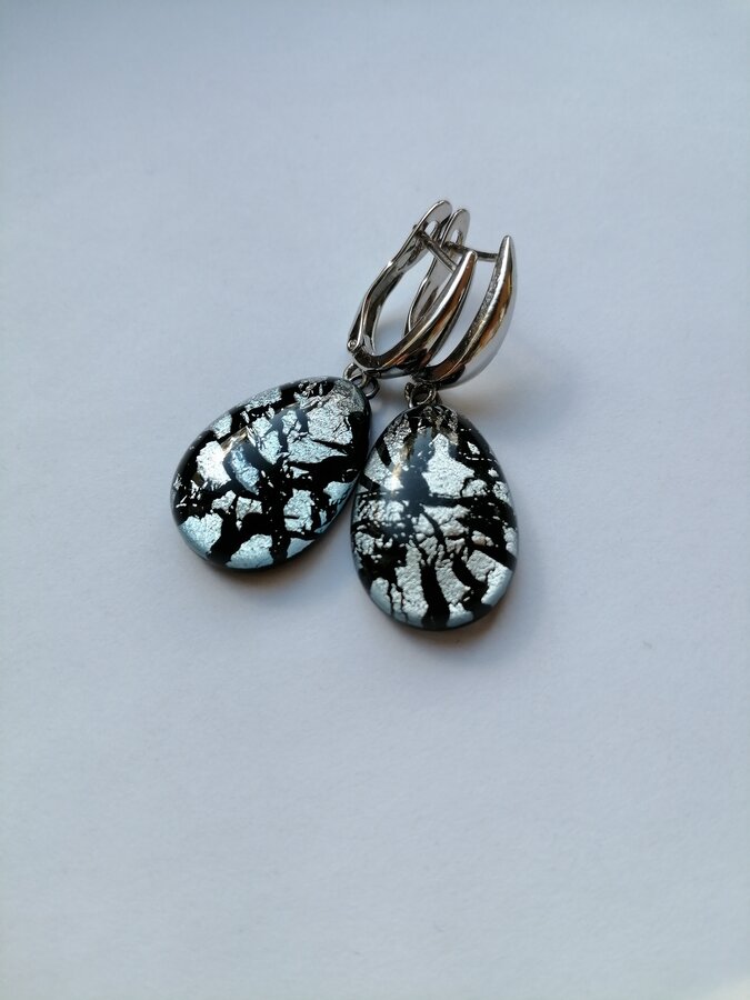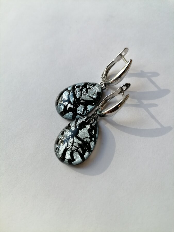 Серьги ручной работы. Метод старения серебра. Работа из стекла с обработкой и плавлением.