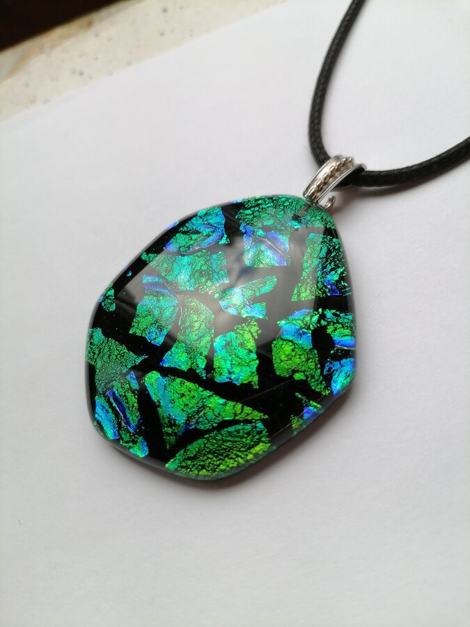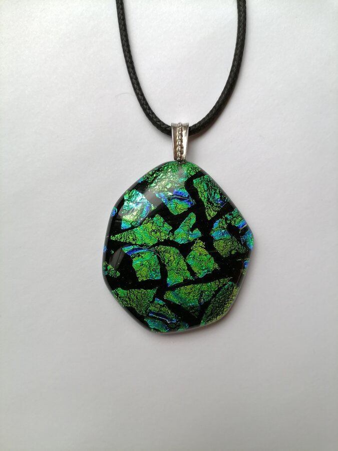 Авторский кулон. Зеленая мозаика с небольшим переливом. Выполнено из сплава стекла. Ручная обработка с выплавлением в печи
