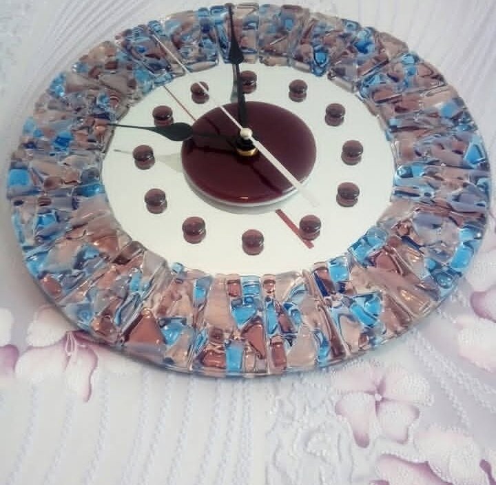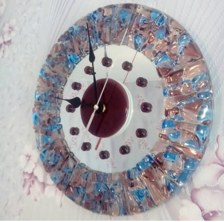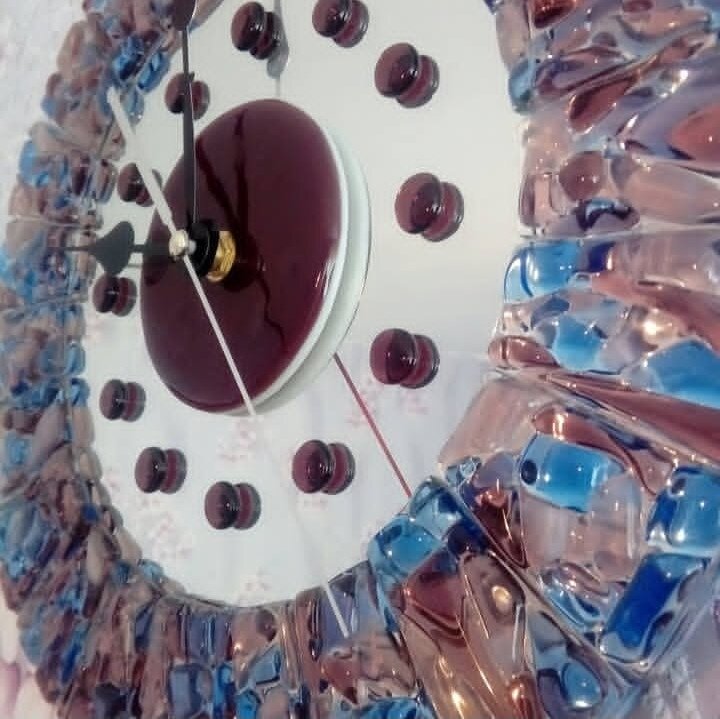 Настенные часы. Основа зеркало. Декор - сплав стекла. Полностью ручная и авторская работа.
