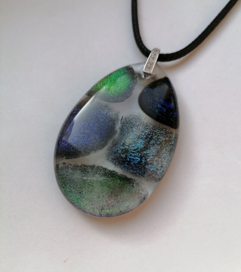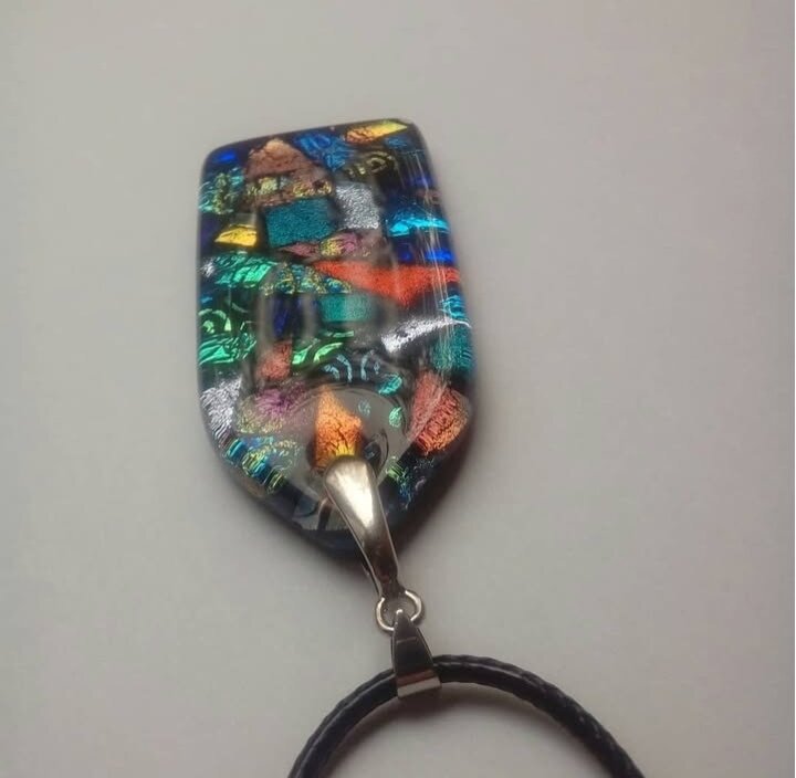 Подвеска авторской работы. Сплав стекла с разноцветными фрагментами. Ручная работа.