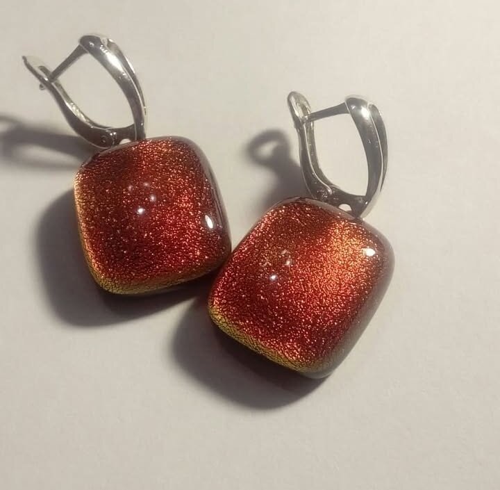 Серьги ручной работы. Авторский сплав стекла с обработкой и плавлением стекла в печи