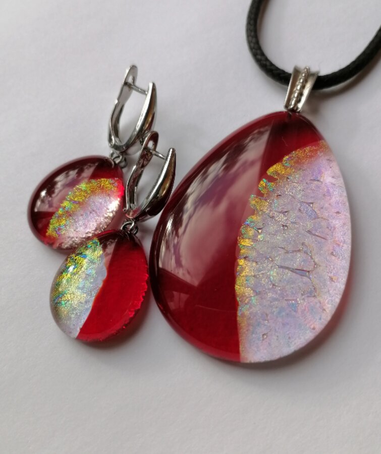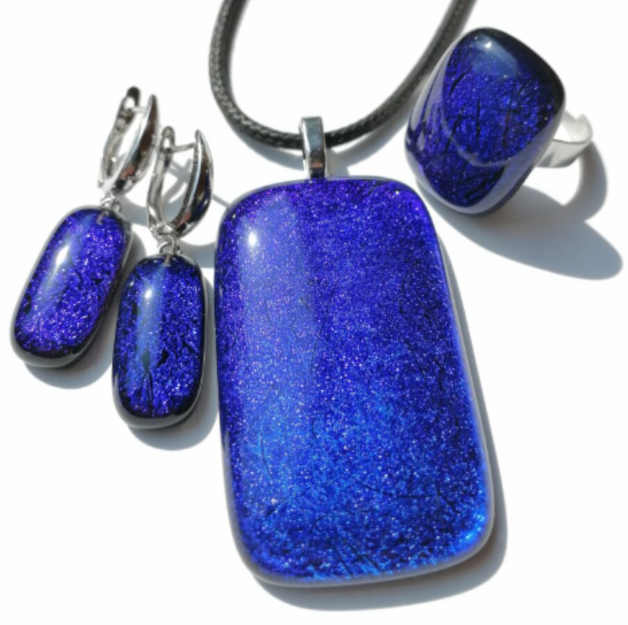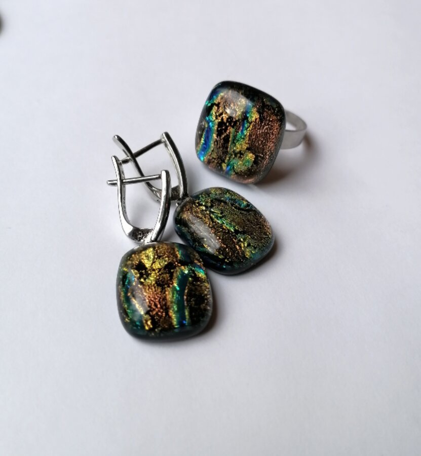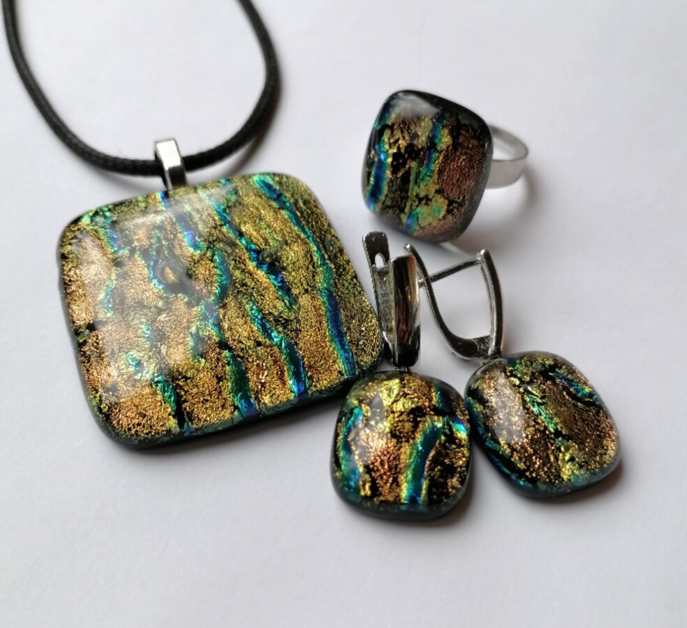 Авторский комплект украшений. Работа выполнена из стекла методом плавлений в печи на разных температурах с ручной обработкой.
