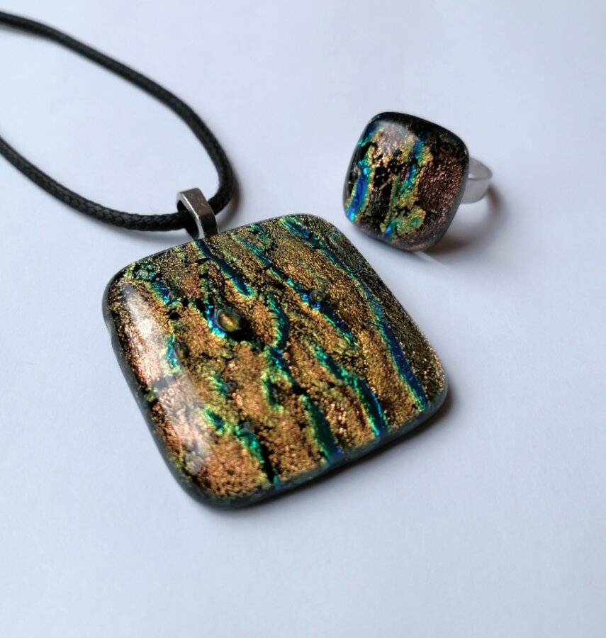 Авторский комплект украшений. Выполнен из стекла с обработкой и плавлением в печи.