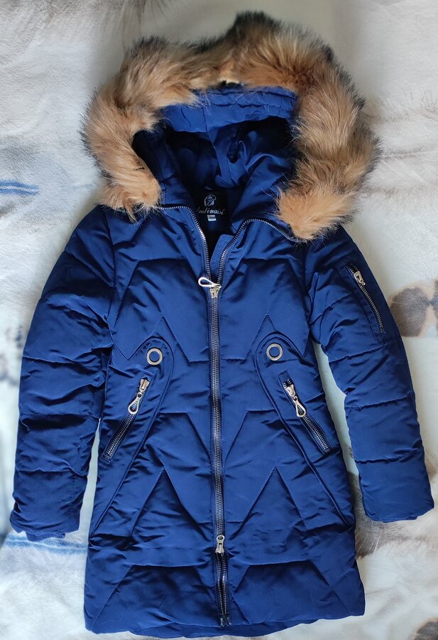 Зимняя удлинённая куртка-пальто для девочки, р-р 140-146 (Д - 73 см, Ш снаружи - 40 см, ДР от плеча - 55 см)