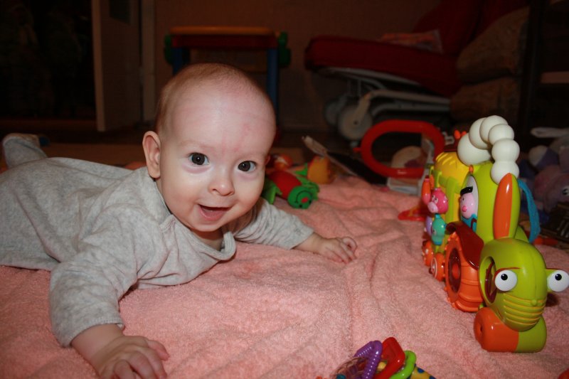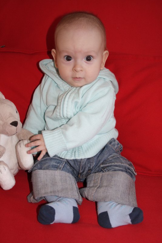 зато есть плюс - Андрюшка в кроватке встал на ножки! на прошлой неделе на коленочки, я даже фото выложить не успела, а уже на ножки.. маловато постоял, но тренируется активно :-)