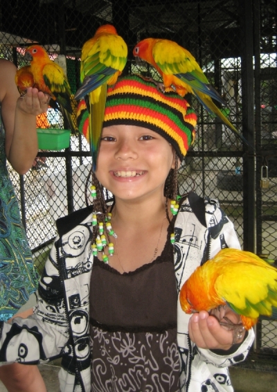 В Paradise Park есть всевозможные птицы - маленькие и огромные попугаи, курицы, голуби, павлины, страусы, козы, большие экзотические птицы с мощными клювами, кролики, обезьяны, пятнистые олени, страусы, лошади... вроде всех перечислила.